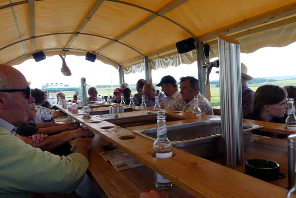 | ..jetzt geht es von Bord. | Ein Blick zurück auf die Theresia | Aufsitzen und Abfahrt | |