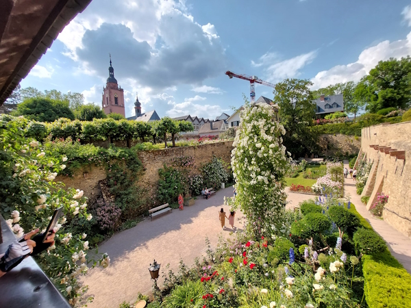 der Kurfüstlichen Burg Eltville am Rhein wurde 1979 angelegt. Er beheimatet über 350 verschiedene Rosensorten |