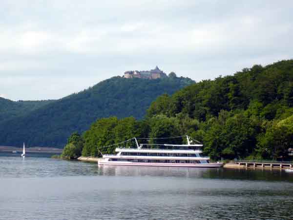 dreistündigen Schifffahrt durch das Weserbergland vorbei an dem über der