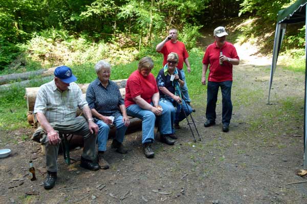 Wanderbegeisterte in der Kammermühle bei Hatzbach, um einen Wanderverein