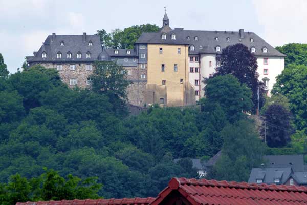 | endlich eine Bank nach zweieinhalb Kilometern nur bergauf | Die Burg Freusburg ist heute eine Jugendherberge