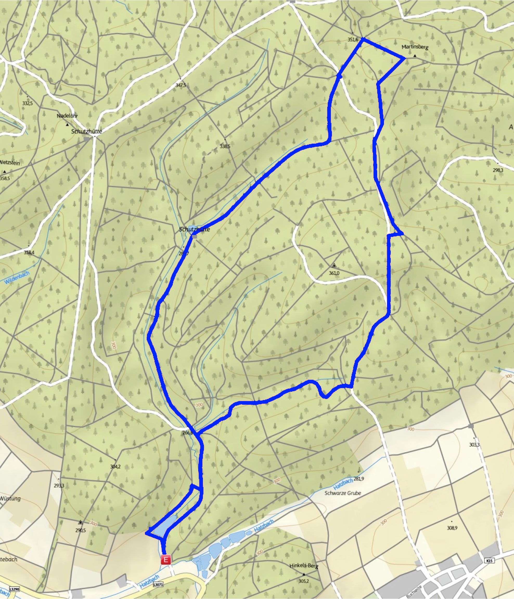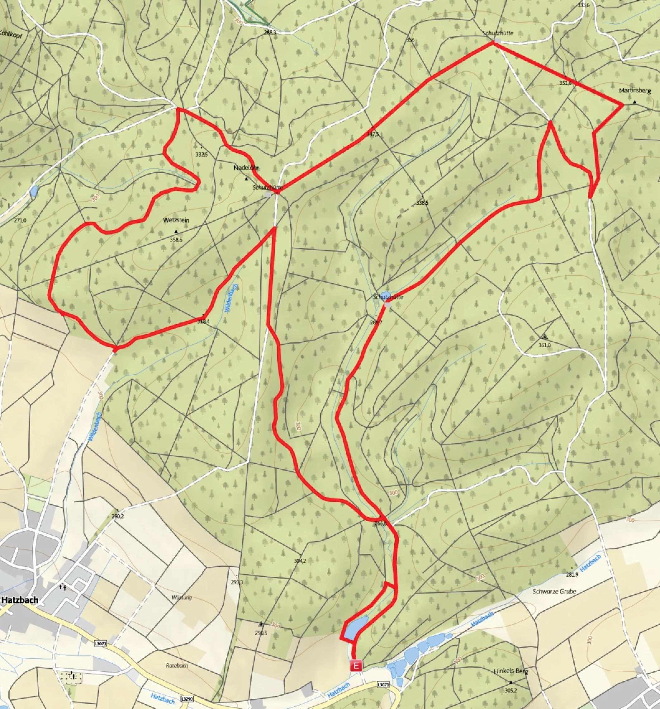Start und Ziel: Waldwanderparkplatz an der Straße zwischen Hatzbach und Speckswinkel.